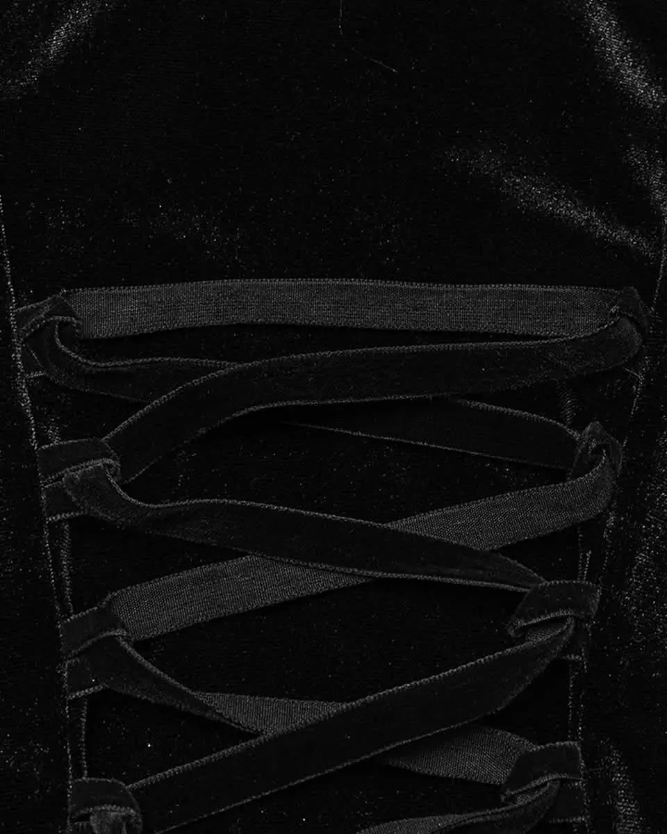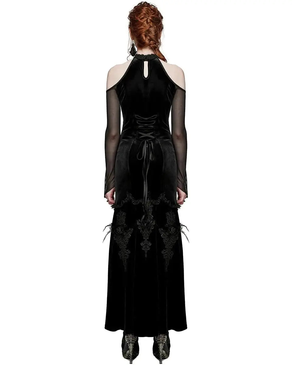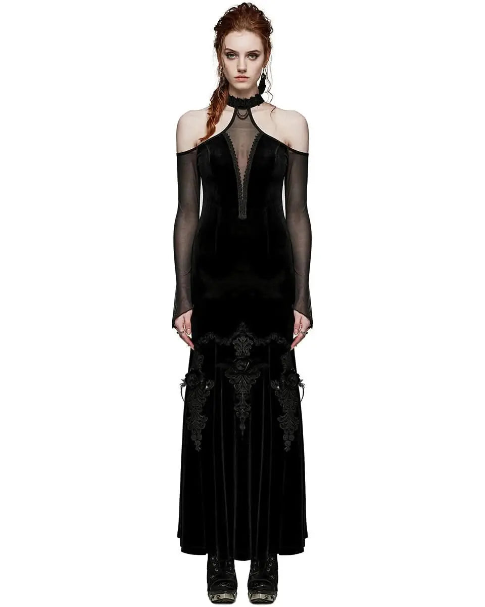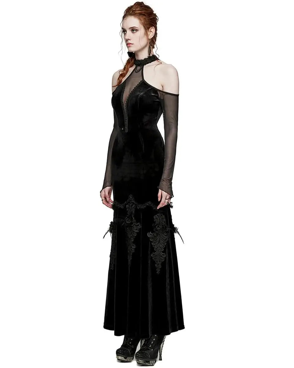 Discover the captivating allure of the Avernian Dress, a masterpiece of gothic fashion that embodies dark elegance and timeless charm. This stunning dress, crafted from luxurious stretch velvet and sheer mesh patchwork, offers a harmonious blend of comfort and drama. The off-shoulder design and deep V-neckline create a mesmerizing silhouette, perfect for those who dare to make a statement.