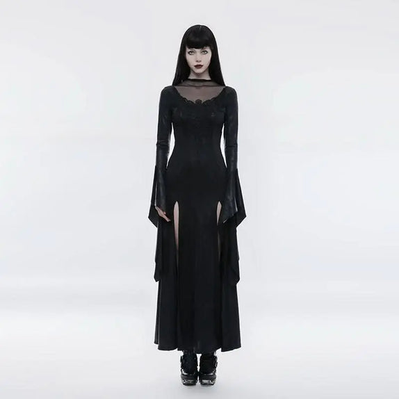 The Reign of Shadows Dress is not just a piece of clothing; it's an experience. The thigh-high slits offer a daring glimpse of skin, enhancing the dress's seductive appeal and allowing for graceful movement. Perfect for moonlit gatherings or shadowy soirées, this dress ensures you stand out in any crowd. Whether you're embracing your inner dark queen or simply seeking a unique addition to your gothic wardrobe, the Reign of Shadows Dress is your ideal choice.