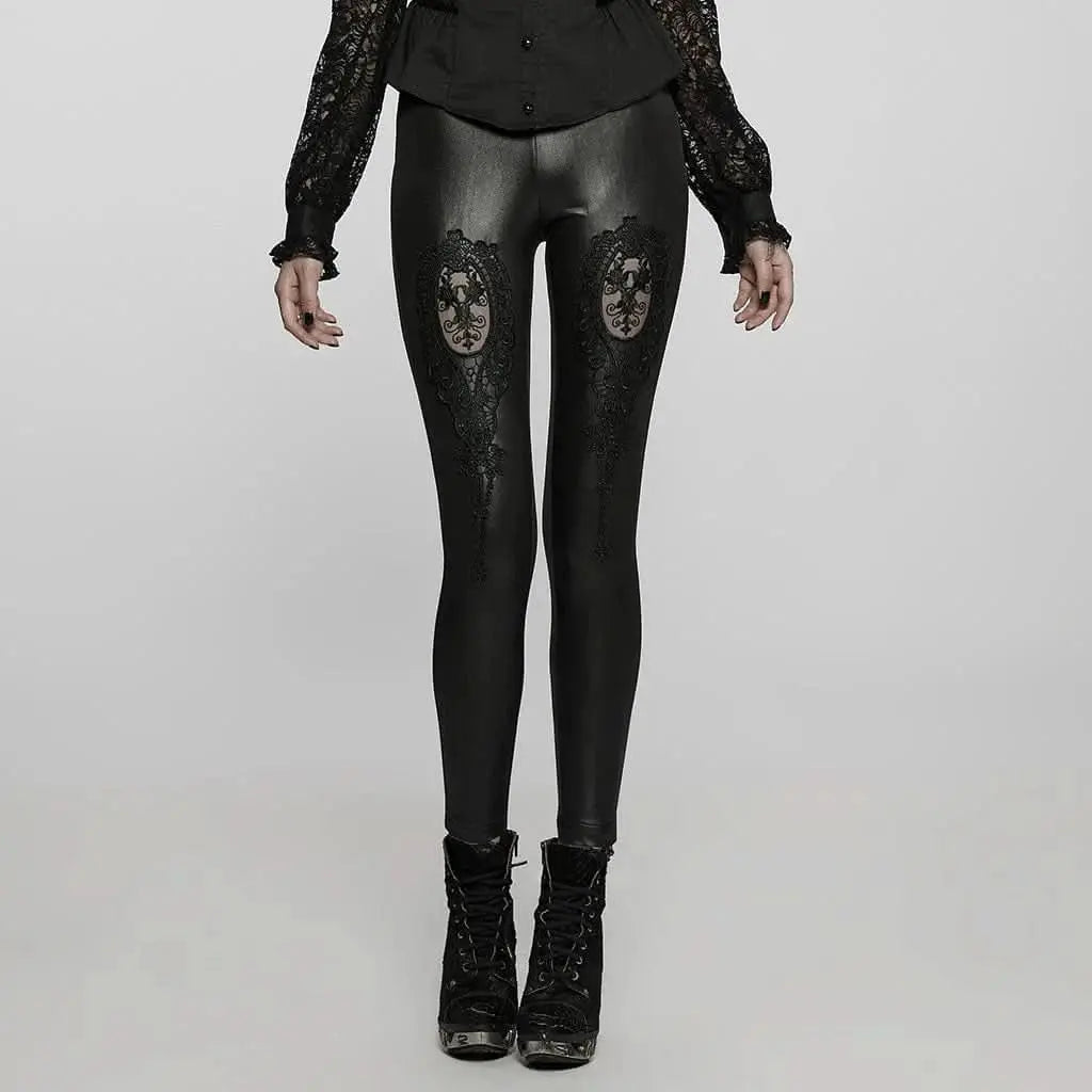 Luxurious faux leather leggings: a dance of gothic elegance and daring defiance.
