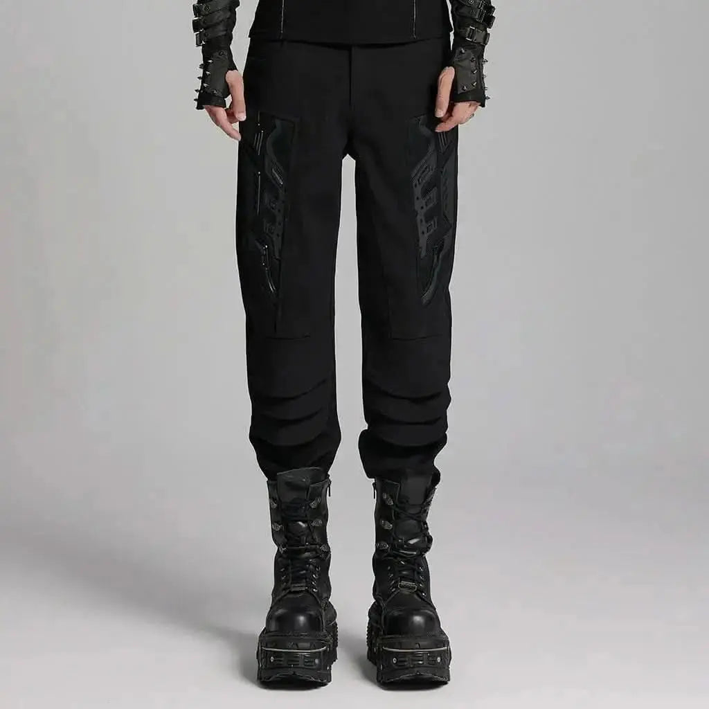 Step into the dark allure of gothic fashion with the Phantomyre Trousers, where bold style meets tactical innovation. These striking black trousers are crafted for those who dare to defy convention, featuring intricate armor detailing that exudes a fierce, punk-inspired edge. The Phantomyre Trousers are your perfect companion for making a powerful statement, whether you're navigating the underground scene or redefining your everyday attire.