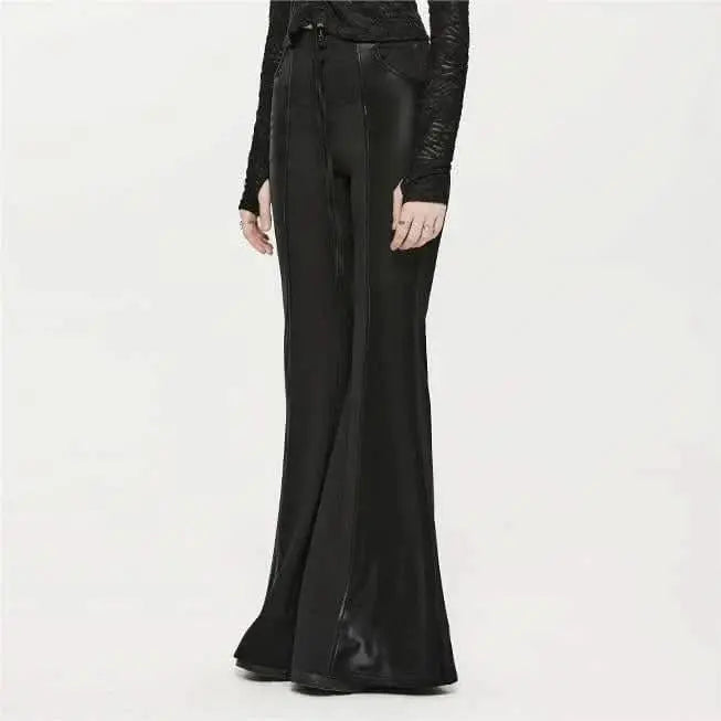 Step into the shadows with the Wyrmshade Flared Pants, a perfect fusion of gothic edge and sleek sophistication. These pants are designed to captivate, featuring a high-waisted silhouette that flares dramatically at the hem, ensuring you make a bold statement with every step. The elastic faux leather panels on each side not only enhance comfort but also amplify the rebellious aesthetic that defines gothic fashion.