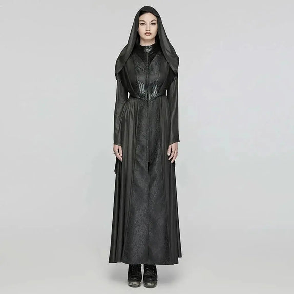 Discover the allure of the Gravemire Dress, where gothic romance meets regal sophistication. This enchanting dress is designed for those who cherish dark elegance, featuring a long, hooded silhouette that exudes mystery and refinement. The exquisite brocade details of the Gravemire Dress weave a captivating aura, making it a must-have for any gothic wardrobe.