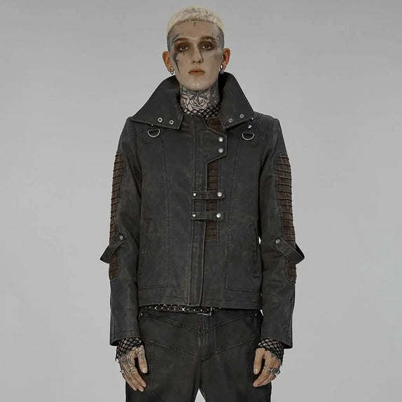 Crafted with attention to detail, the Cybernetic Punk Jacket features weathered punk studs and coffee weathered panel details, offering a vintage yet futuristic vibe. Embrace the darkness and let your style speak volumes with this iconic piece. Elevate your wardrobe and express your individuality with a jacket that defies convention and celebrates the bold spirit of punk fashion.