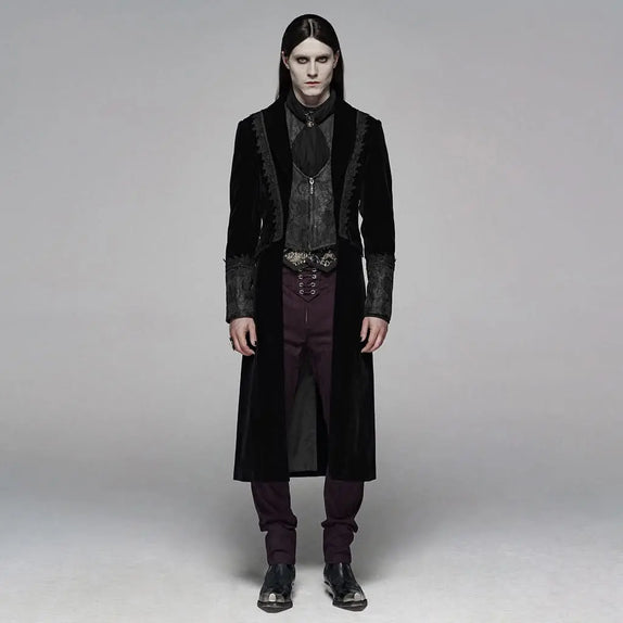 Step into the shadows with the exquisite La Sombra Tailcoat, a masterpiece of gothic elegance that embodies the essence of mysterious allure. Crafted from luxurious black velveteen, this tailcoat is designed for those who dare to stand out. The intricate jacquard design on the front and cuffs adds a touch of sophistication, while the lace decorations provide an ethereal charm that captivates the eye.