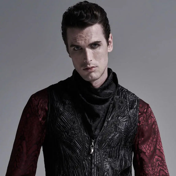 Unleash your inner rebel with the Outlaw Bandana in striking black. This essential accessory for the gothic gentleman is crafted from luxurious black jacquard fabric, offering a satin-like feel that exudes sophistication and mystery. Whether you're aiming for a dark baroque look or adding a touch of edge to your ensemble, this bandana is your perfect companion.