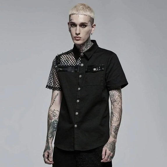 Functionality meets style with two front pockets—one with a zipper fly closure and the other adorned with a shiny PVC lapel and button closure. These elements not only provide practical storage but also contribute to the shirt's unique punk aesthetic. Whether you're heading to a concert or a night out, the Freezing Moon Button-up Shirt with Mesh Panels is your go-to choice for an effortlessly cool, gothic look.