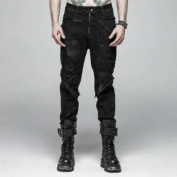 Step into the shadows with our Sandstorm Pants, the ultimate statement piece for any gothic wardrobe. Crafted from durable black denim, these pants are more than just an alternative essential; they are a testament to your unique style and rebellious spirit. The asymmetric ragged and textured design adds a touch of chaos, perfectly embodying the essence of gothic fashion.