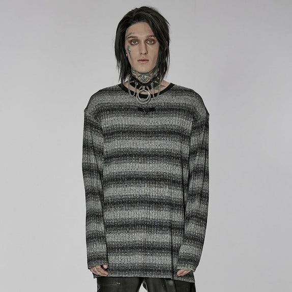 Embrace the essence of grunge with our Sludge Grunge Striped Tee in gray, a staple for any alternative wardrobe. This tee captures the rebellious spirit of the grunge movement with its distinctive striped design and muted gray tones. Crafted from a unique knitted and elastic fabric, it offers both comfort and edgy style, making it perfect for those who dare to stand out.