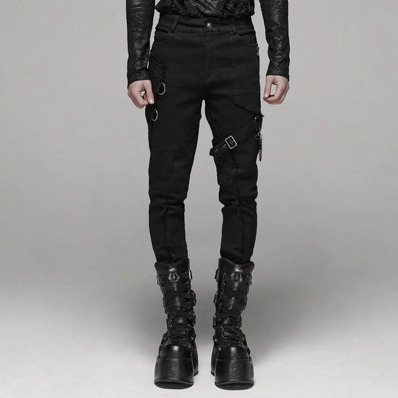 The Thunderbringer Pants feature a striking ragged design, complete with front and back pockets for practicality. An asymmetric belt adds an edgy twist, making these pants a must-have for any gothic fashion aficionado. The embellishments are where these pants truly shine: chains, zippers, and metal D-rings create a look that is both fierce and sophisticated, embodying the rebellious spirit of the gothic subculture.