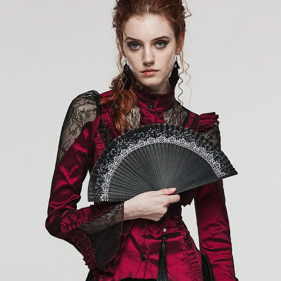 Crafted with meticulous attention to detail, the Dark Enchantment Hand Fan is both foldable and portable, allowing you to carry a piece of gothic elegance wherever you go. Its intricate floral design evokes a sense of timeless beauty, making it an ideal companion for gothic gatherings, evening soirees, or simply as a unique addition to your collection of gothic accessories.