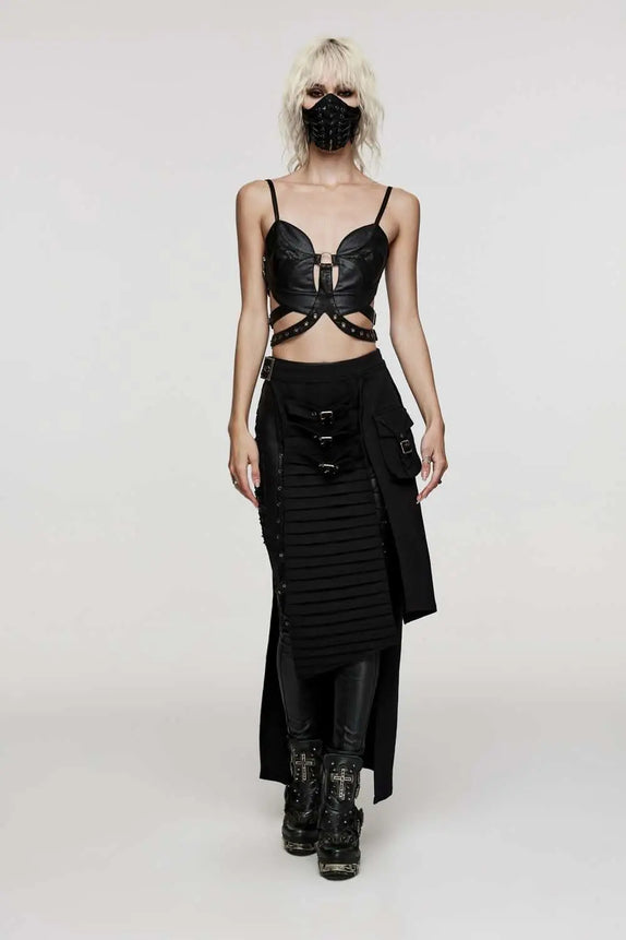 Step into the mystical realm of gothic fashion with the Incantation Skirt, a captivating piece that promises to transform your style. This enchanting skirt features an asymmetrical hemline adorned with slits, offering a dramatic flair that is both bold and alluring. The decorative eyelets and buckles add a touch of punk elegance, making it a standout accessory for those days when your outfit needs a magical lift.