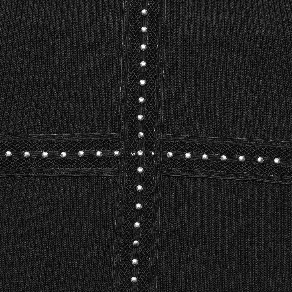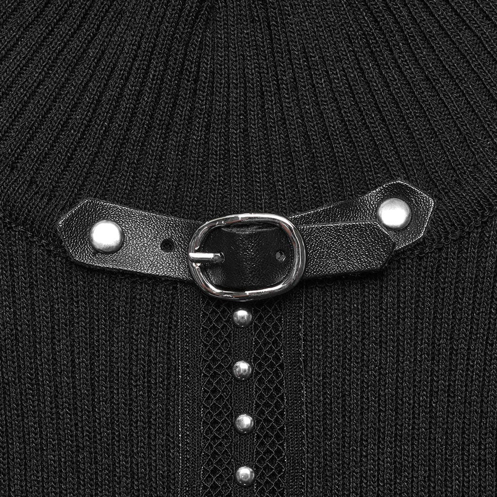 This gothic top features a high neckline with a cut-out design at the back and a cropped hemline.
