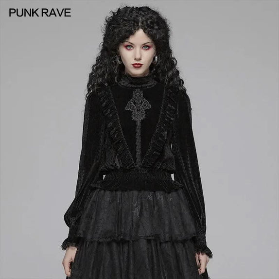 Made from sumptuous elastic velveteen, the Heart of Cello Blouse offers both comfort and style. Its elastic cuffs and bottom ensure a graceful silhouette, while the elegant Victorian design is adorned with charming frill details that whisper tales of bygone eras. Each element of this blouse is thoughtfully designed to resonate with the heart of gothic fashion enthusiasts.