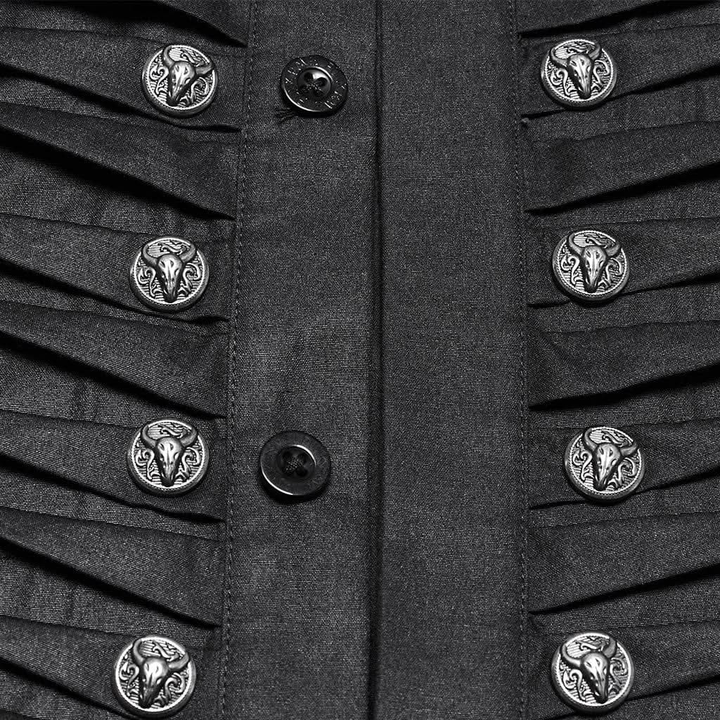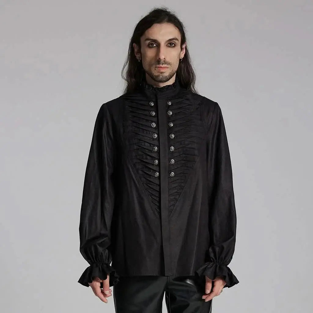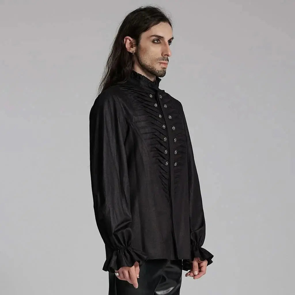 Featuring intricate pleated ruffles and decorative buttons, the Dreadspire Shirt captures the timeless allure of Victorian style. The soft flowing cuffs add a touch of drama, perfect for those who appreciate the finer details of gothic fashion. This shirt is crafted to offer both comfort and style, making it an ideal choice for any occasion.
