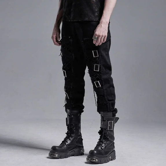Crafted for the modern goth, these trousers come with a front zip fly and a distinctive silver skull button, adding an extra edge to your ensemble. The distressed details on the back pockets enhance the rebellious aesthetic, making these trousers a must-have for any gothic wardrobe. Whether you're heading to a punk concert or a gothic gathering, the Scissorhands Trousers will ensure you stand out as a true fashion icon.