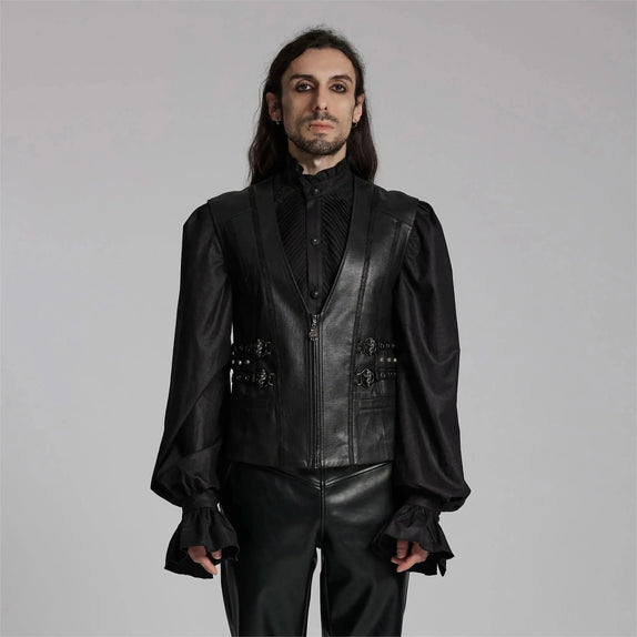 The front zip closure of the Duskwyrm Waistcoat provides a sleek and structured appearance, making it an essential piece for any commanding outfit. Its leather-like texture, crafted from a premium blend, offers both durability and comfort, ensuring that you can wear it from dusk till dawn with ease. The smooth lining enhances the experience, allowing for effortless layering over your favorite gothic shirts or pairing with gothic trousers.