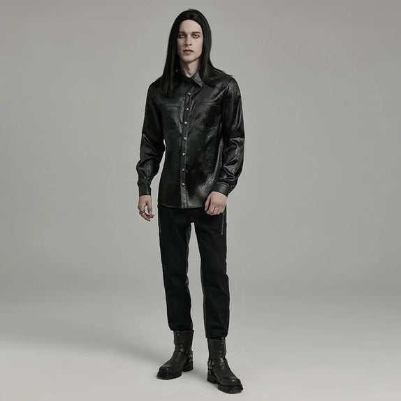 Each side of the shirt boasts a functional pocket, seamlessly blending practicality with style. The metal decorations are not just for show; they are a testament to the shirt's unique character, ensuring you stand out in any crowd. Accentuated with PU leather details, this button-up shirt captures the essence of gothic fashion, making it an indispensable addition to your collection.
