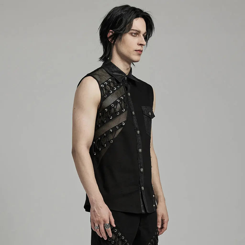 This punk vest features a cotton fabric with mesh splicing, and buttons at the centre front.