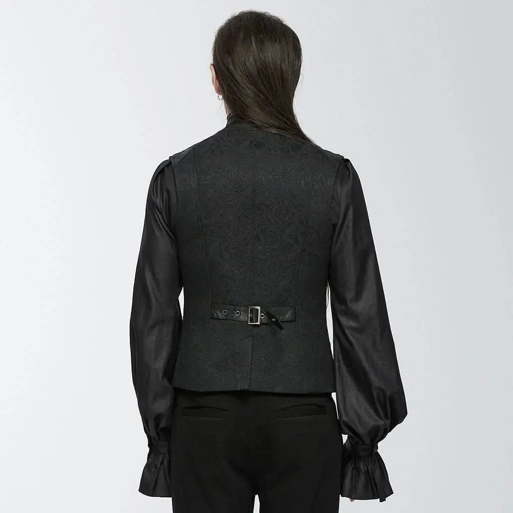 Discover the allure of the Wraithspire Vest, a masterpiece of gothic fashion that seamlessly blends elegance with dark majesty. This vest is crafted for those who cherish intricate design and timeless sophistication. The textured jacquard fabric and exquisite detailing make it a standout piece, perfect for grand gothic gatherings or adding a regal touch to your everyday ensemble.