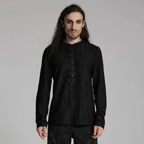 The Midnight Ascent Top is adorned with decorative buckles, offering a punk-inspired edge that complements its gothic aesthetic. Whether you're embracing the shadows of the night or making a bold statement during the day, this top is your ideal companion. Its versatile design allows you to pair it with anything from leather pants to flowing skirts, making it a staple piece for any occasion.