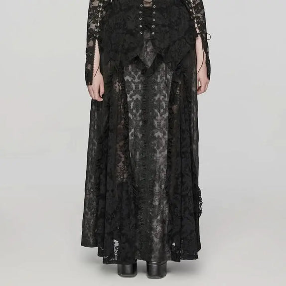 Unveil your dark side with this mesmerizing mesh skirt, where every detail is crafted to perfection. Let the Phantasmagoria Mesh Skirt be the centerpiece of your wardrobe, inviting whispers of admiration and capturing the essence of gothic elegance. Pair it with your favorite corset or lace top to complete your look and step into a realm where fantasy meets fashion.