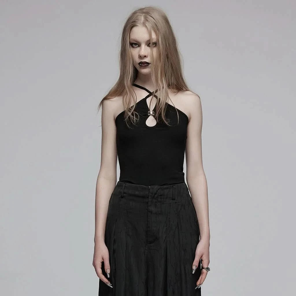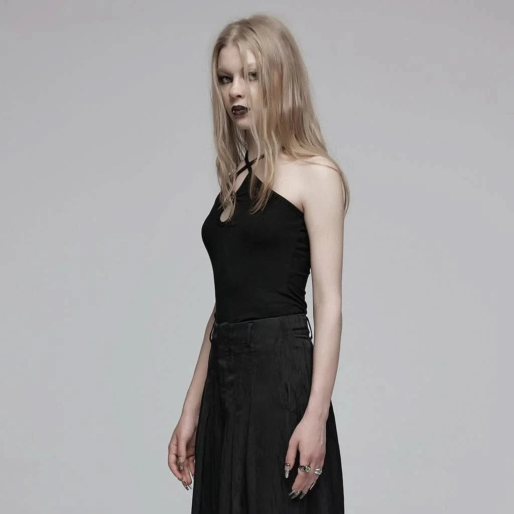 At the heart of this top is a striking water-drop cutout at the chest, beautifully complemented by a delicate Chinese-style metal buckle. This intricate detail not only adds a touch of mystery but also elevates the top's gothic charm. Whether you're attending a moonlit gathering or exploring the hidden corners of a gothic festival, the Ossifrage Top is your perfect companion.