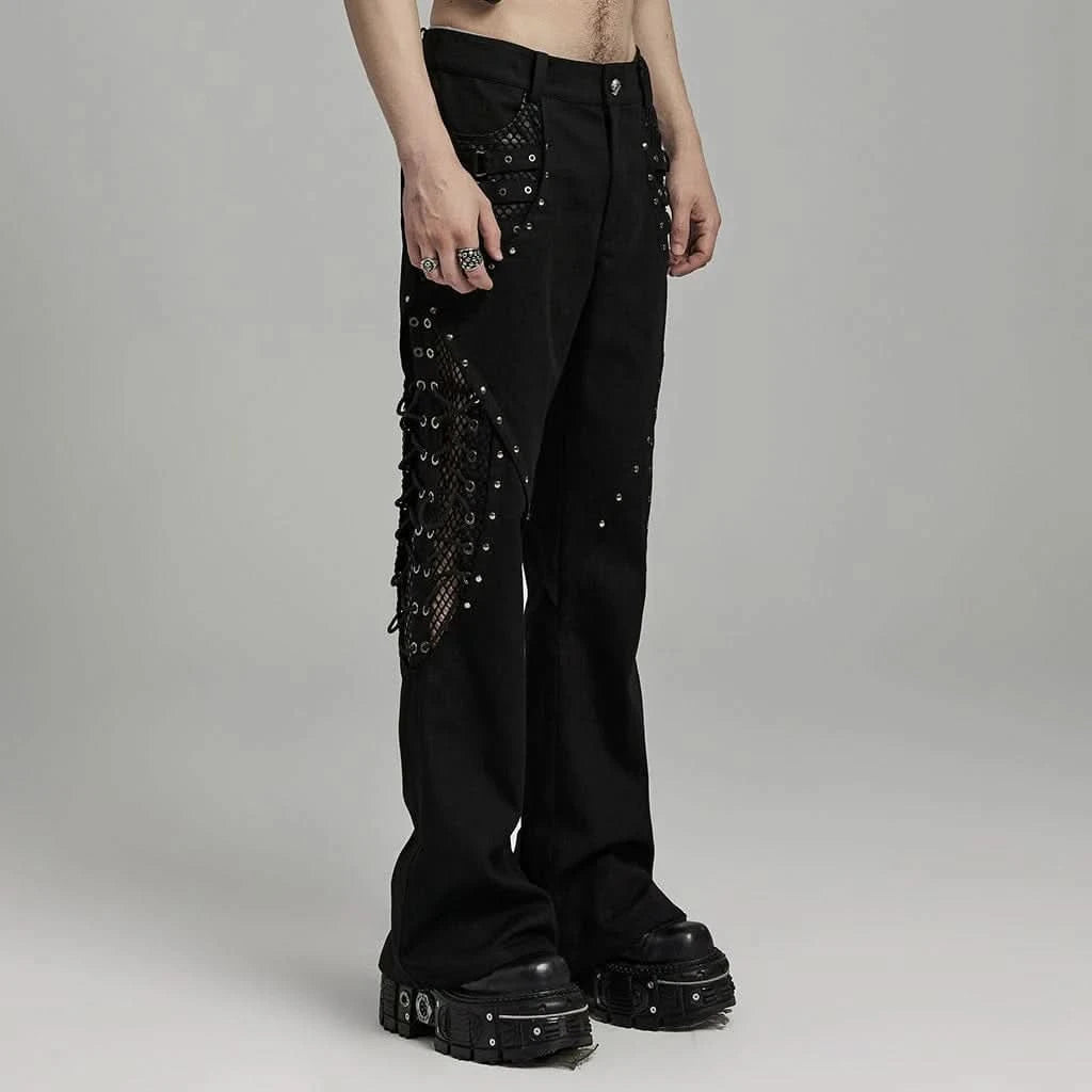 Step into the world of gothic fashion with our Hyaline Trousers, where lace, studs, and attitude collide. These trousers are crafted for those who dare to be different, offering a bold statement that defies convention. The exquisite flared silhouette is enhanced by delicate lace paneling, creating a harmonious blend of fierce and feminine. Studded accents add a touch of rebellious sparkle, ensuring you catch the light and everyone's attention.