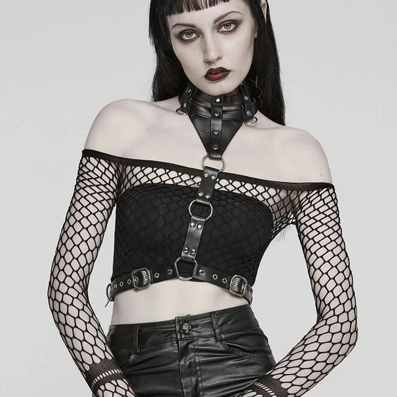 Ce harnais punk est doté d'un tour de cou et d'une taille réglables.