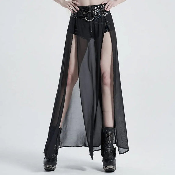 Apportez-vous avec le Raising Hell Rock à une dose unique dans votre garde-robe ! Ce Rock est fabriqué en maille polyester transparente et en short noir en laine de coton et élasthanne. Ce design zweiteilige est réalisé à partir d'un ensemble de couches de PVC brillant et de pièces métalliques argentées, de joints toriques avec des marques et des Riemen an der Taille verziert. Mit seinem Frontreißverschluss befestigen. Auch mit mat strukturiertem Denimbund erhältlich.