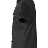 Superbe chemise noire en coton pour homme à manches courtes. Double poche poitrine et boutons iconiques finement sculptés. Rejoignez l'armée des ténèbres…