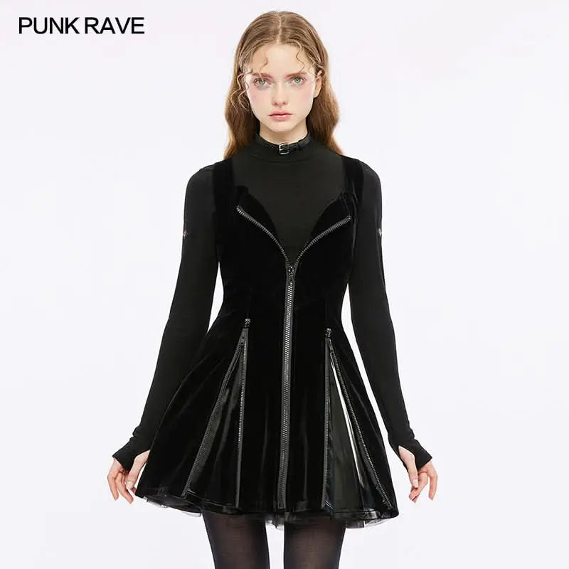 With adjustable back-cross straps, you can customize your look effortlessly, ensuring the dress complements your individual style. The front and back zippers, enhanced with faux leather splicing, offer multiple styling options, allowing you to wear it zipped for a sleek, polished look or open as a strappy skirt for a more daring appearance.