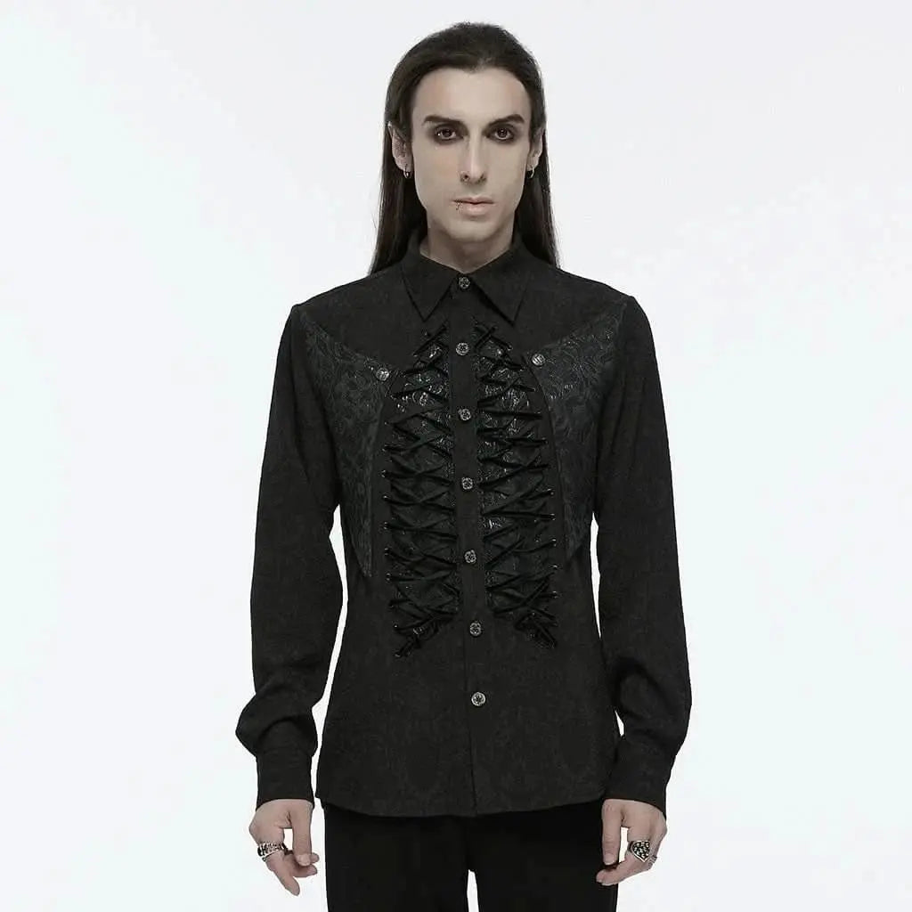 Step into the shadows with the Noctivex Shirt, a true embodiment of gothic allure. This shirt is designed for those who dare to captivate, featuring exquisite embroidery and a dramatic lace-up front that exudes an effortlessly enigmatic charm. The Noctivex Shirt is more than just a garment; it's a statement of sophistication and mystery.