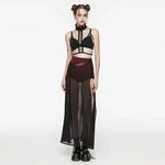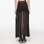 Step into the shadowy allure of gothic fashion with our Crepuscular A-Line Skirt, a striking piece that embodies the essence of dark elegance. This red skirt is crafted with a sheer fabric that gracefully flows into an A-line silhouette, offering a mesmerizing blend of mystery and sophistication. Perfect for those who revel in the enigmatic, this skirt is a must-have for any gothic wardrobe.