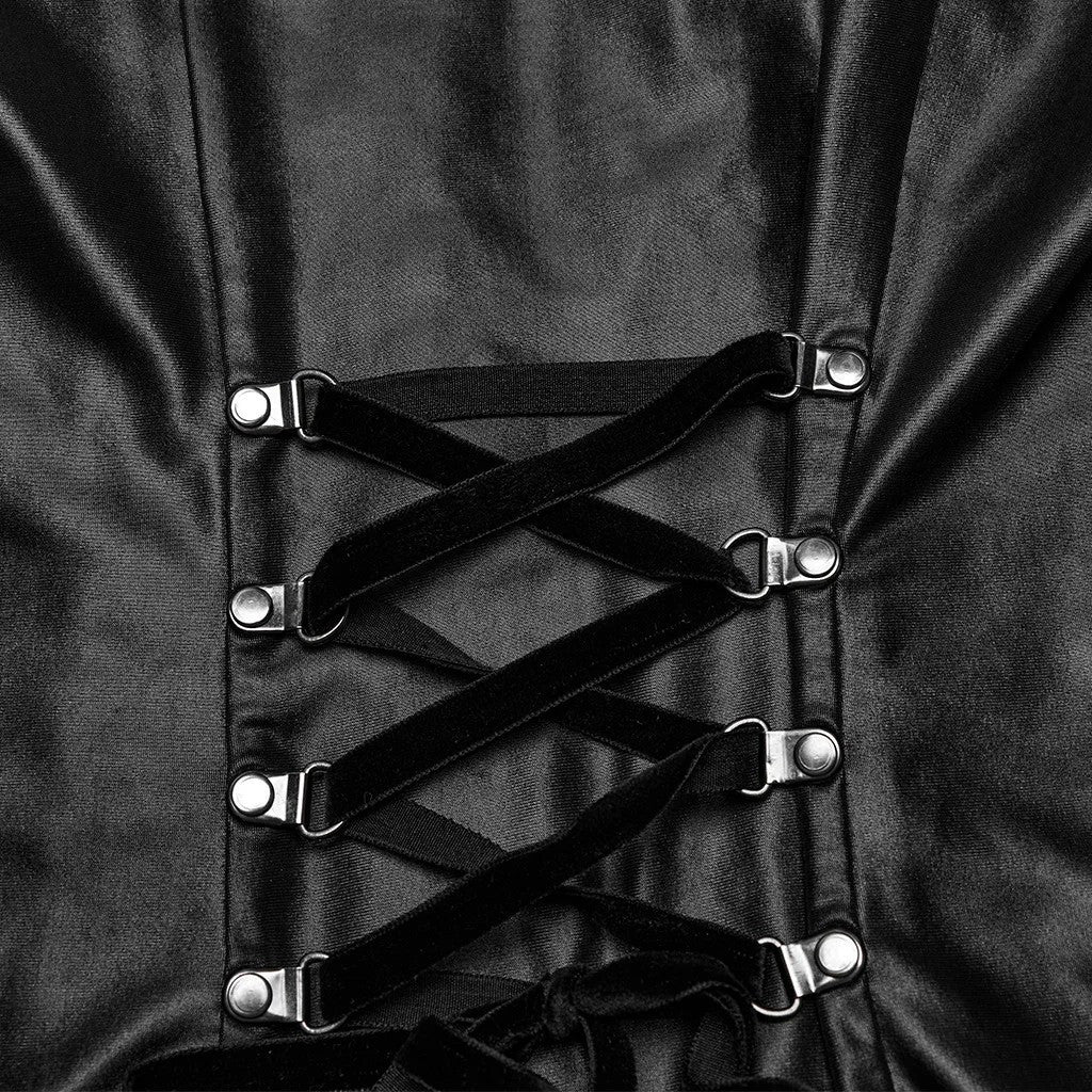 Cette robe gothique présente des détails en dentelle et en rivets.