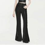 Step into the shadows with the Wyrmshade Flared Pants, a perfect fusion of gothic edge and sleek sophistication. These pants are designed to captivate, featuring a high-waisted silhouette that flares dramatically at the hem, ensuring you make a bold statement with every step. The elastic faux leather panels on each side not only enhance comfort but also amplify the rebellious aesthetic that defines gothic fashion.