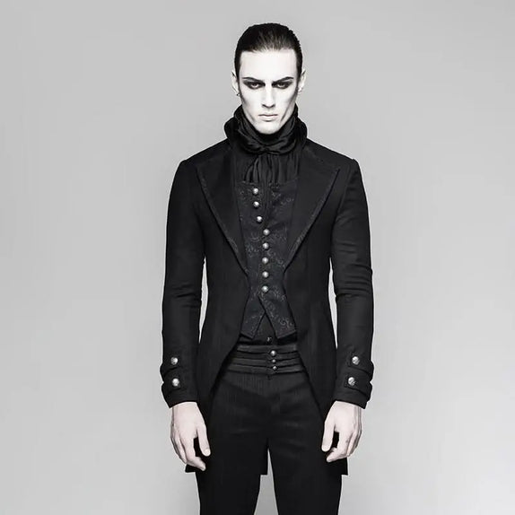 Step into a world of gothic sophistication with our Dark Luxury Coat, a masterpiece crafted for those who revel in the shadows. This stunning tailcoat is designed with a unique fake two-piece style, offering an illusion of layered elegance. Made from high-quality woven fabric, it features exquisite jacquard inserts that add an air of aristocratic charm.