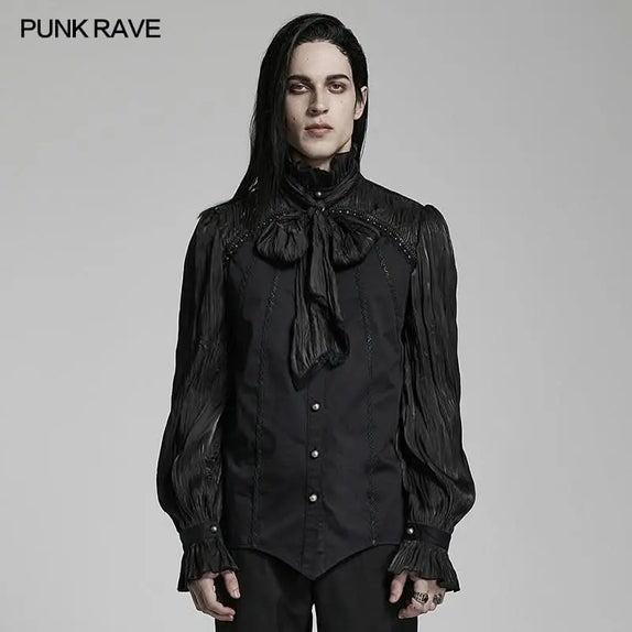 Unleash your inner gothic muse with the detachable bowtie, allowing you to customize your look effortlessly. The engraved gothic silver buttons provide a striking contrast against the deep, rich fabric, enhancing the overall aesthetic. Whether you're attending a midnight gathering or simply wish to express your unique style, this dress shirt is your perfect companion.